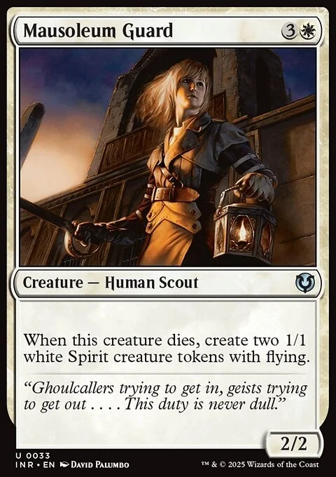 When Mausoleum Guard dies, create two 1/1 white Spirit creature tokens with flying.