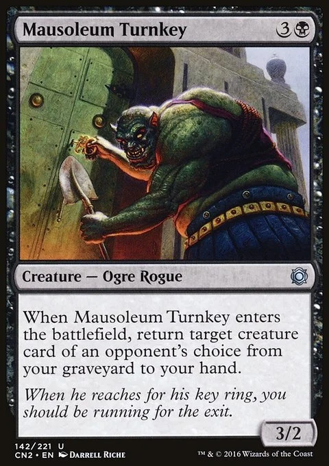 When Mausoleum Turnkey enters the battlefield, return target creature card of an opponent's choice from your graveyard to your hand.