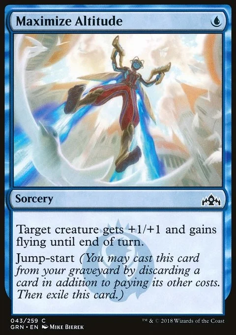 Target creature gets +1/+1 and gains flying until end of turn. Jump-start (You may cast this card from your graveyard by discarding a card in addition to paying its other costs. Then exile this card.)