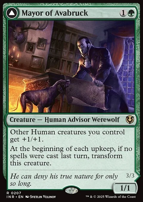 At the beginning of each upkeep, if no spells were cast last turn, transform this creature.