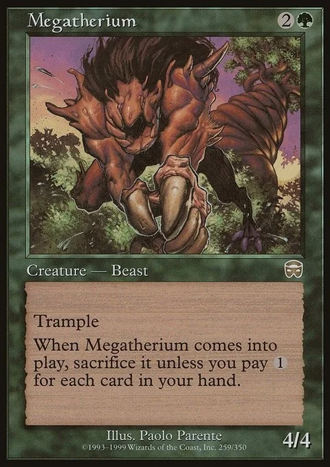 When Megatherium comes into play, sacrifice it unless you pay 1 for each card in your hand.