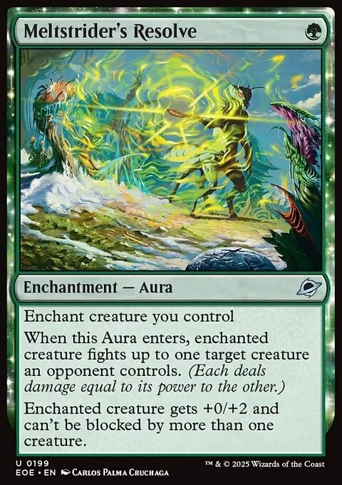 Enchant creature you control When this Aura enters, enchanted creature fights up to one target creature an opponent controls. (Each deals damage equal to its power to the other.) Enchanted creature gets +0/+2 and can't be blocked by more than one creature.