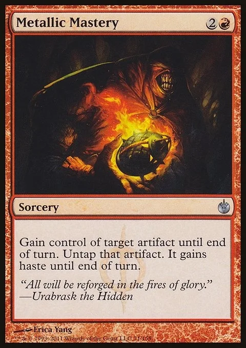 Gain control of target artifact until end of turn. Untap that artifact. It gains haste until end of turn.