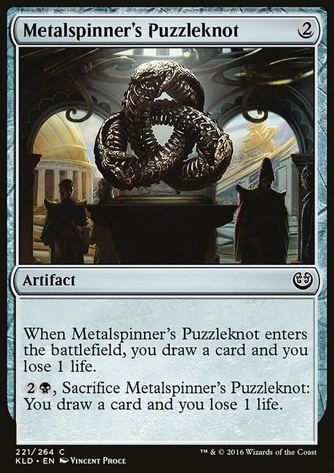 When this artifact enters, you draw a card and you lose 1 life. {2}{B}, Sacrifice this artifact: You draw a card and you lose 1 life.