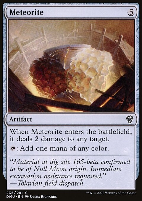 When this artifact enters, it deals 2 damage to any target. {T}: Add one mana of any color.