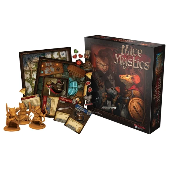 In Mice and Mystics players take on the roles of those still loyal to the king – but to escape the clutches of Vanestra, they have been turned into mice! Play as cunning field mice who must race through a castle now twenty times larger than before. The castle would be a dangerous place with Vanestra's minions in control, but now countless other terrors also await heroes who are but the size of figs.
