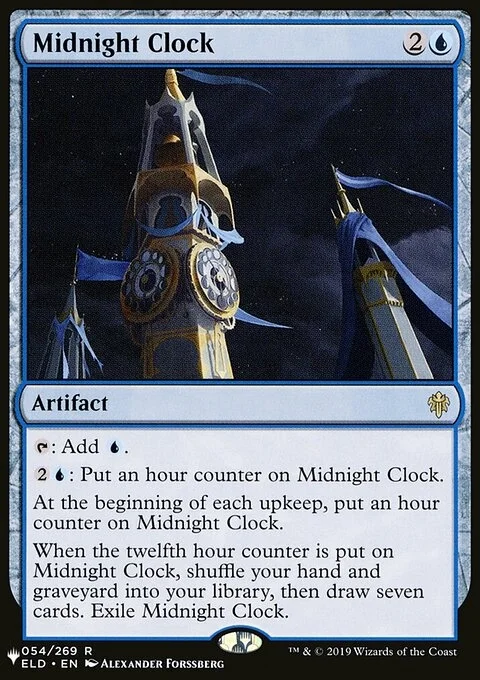 When the twelfth hour counter is put on this artifact, shuffle your hand and graveyard into your library, then draw seven cards. Exile this artifact.
