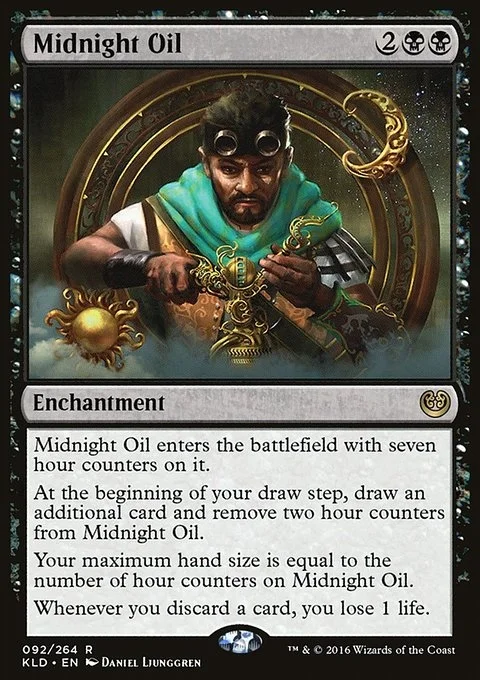 At the beginning of your draw step, draw an additional card and remove two hour counters from Midnight Oil.