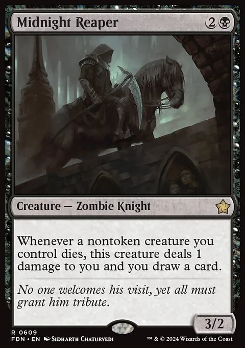 Whenever a nontoken creature you control dies, this creature deals 1 damage to you and you draw a card.