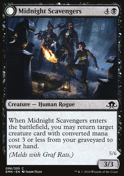 When this creature enters, you may return target creature card with mana value 3 or less from your graveyard to your hand. (Melds with Graf Rats.)
