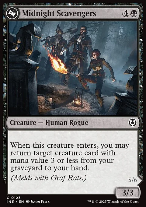When this creature enters, you may return target creature card with mana value 3 or less from your graveyard to your hand. (Melds with Graf Rats.)