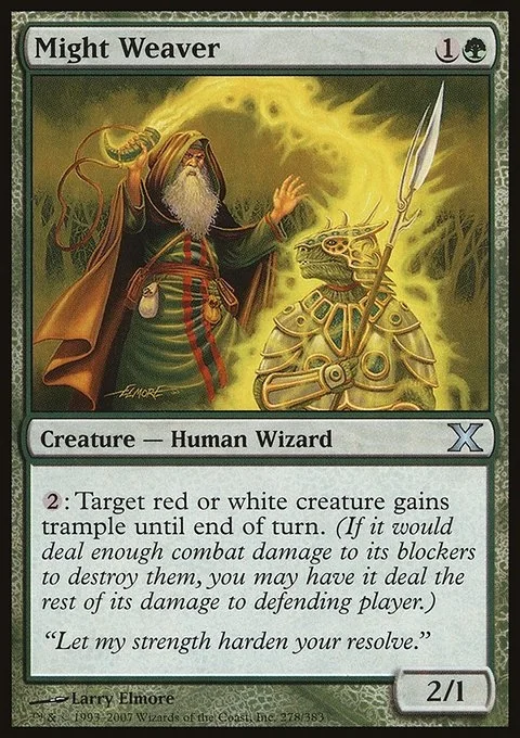 {2}: Target red or white creature gains trample until end of turn. (It can deal excess combat damage to the player or planeswalker it's attacking.)