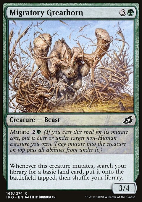 Whenever this creature mutates, search your library for a basic land card, put it onto the battlefield tapped, then shuffle.