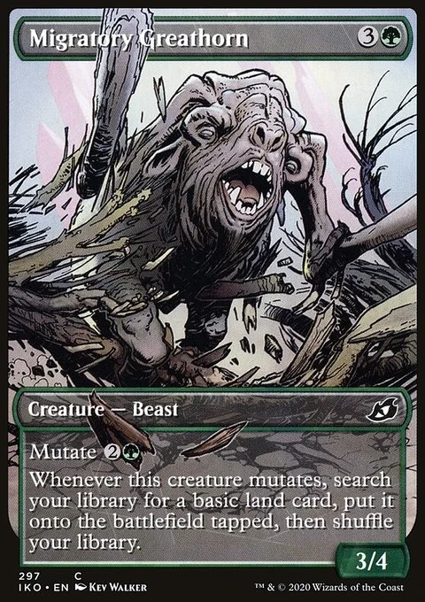 Whenever this creature mutates, search your library for a basic land card, put it onto the battlefield tapped, then shuffle.