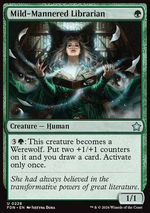 {3}{G}: This creature becomes a Werewolf. Put two +1/+1 counters on it and you draw a card. Activate only once.