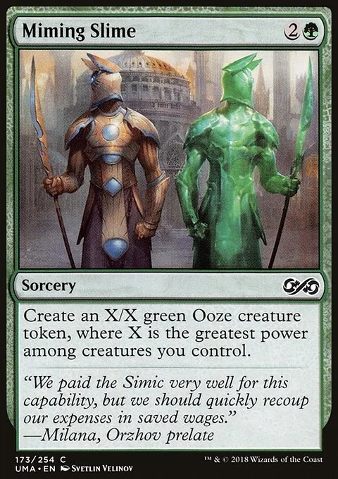 Create an X/X green Ooze creature token, where X is the greatest power among creatures you control.
