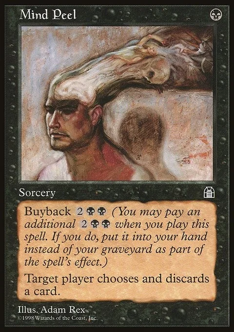 Buyback 2BB (You may pay an additional 2BB when you play this spell. If you do, put it into your hand instead of your graveyard as part of the spell’s effect.) Target player chooses and discards a card.