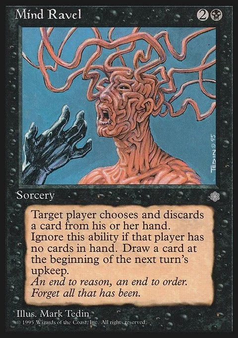 Target player discards a card. Draw a card at the beginning of the next turn's upkeep.