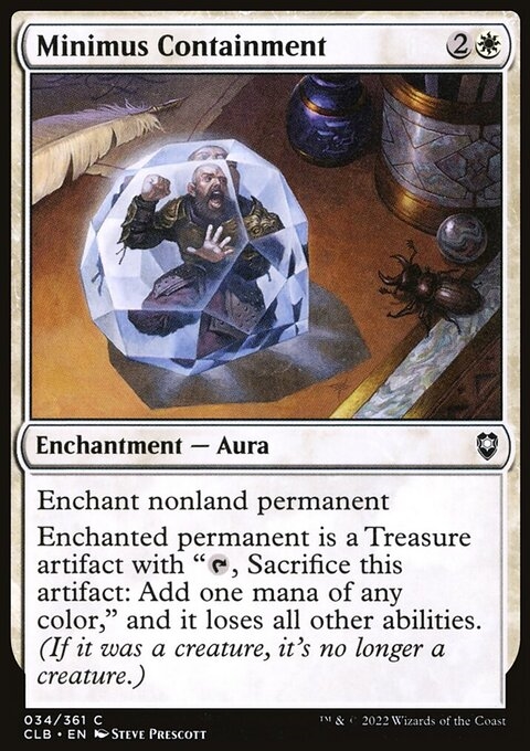 Enchant nonland permanent Enchanted permanent is a Treasure artifact with "{T}, Sacrifice this artifact: Add one mana of any color," and it loses all other abilities. (If it was a creature, it's no longer a creature.)