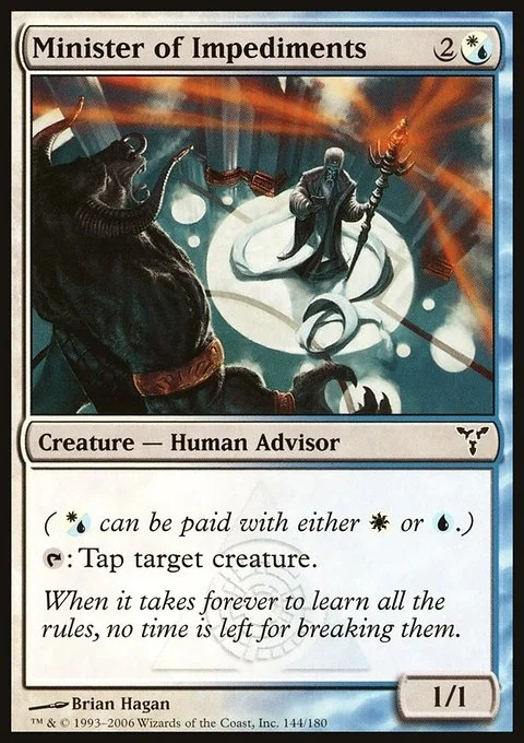 ({W/U} can be paid with either {W} or {U}.) {T}: Tap target creature.