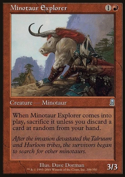 When Minotaur Explorer comes into play, sacrifice it unless you discard a card at random from your hand.
