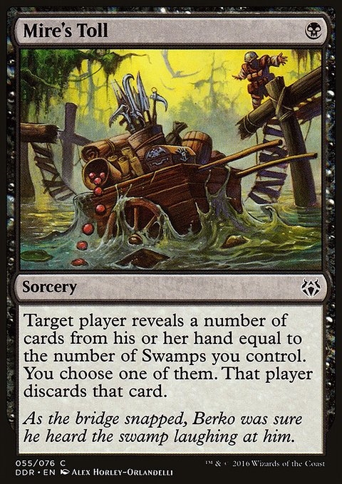 Target player reveals a number of cards from their hand equal to the number of Swamps you control. You choose one of them. That player discards that card.