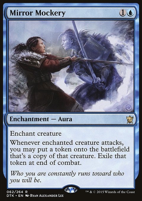 Enchant creature Whenever enchanted creature attacks, you may create a token that's a copy of that creature. Exile that token at end of combat.
