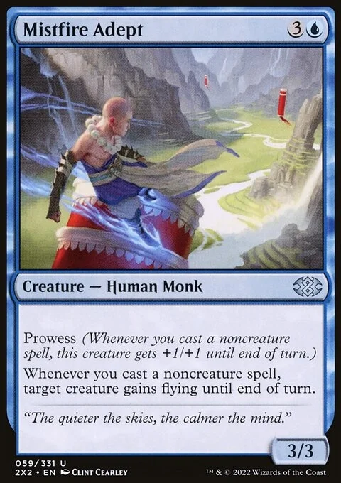 Prowess (Whenever you cast a noncreature spell, this creature gets +1/+1 until end of turn.) Whenever you cast a noncreature spell, target creature gains flying until end of turn.