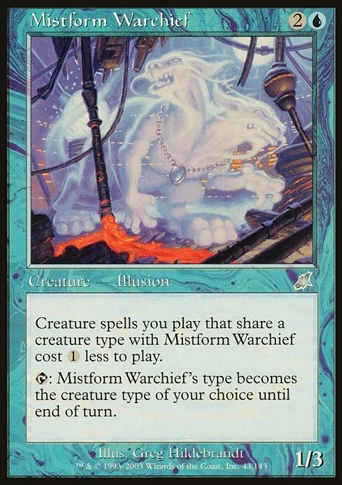 T: Mistform Warchief's type becomes the creature type of your choice until end of turn.