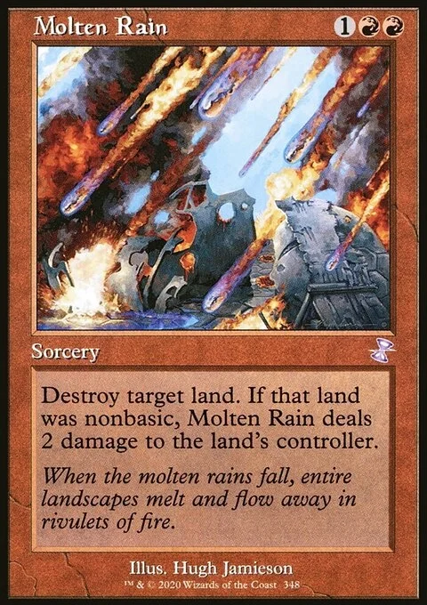 Destroy target land. If that land was nonbasic, Molten Rain deals 2 damage to the land's controller.