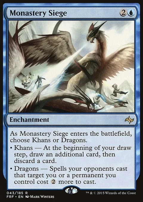 As Monastery Siege enters the battlefield, choose Khans or Dragons.
