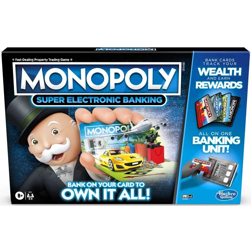- Includes : Gameboard, banking unit, tokens, houses, 49 cards (4 bank, 22 title deed, 23 event), dice & game guide