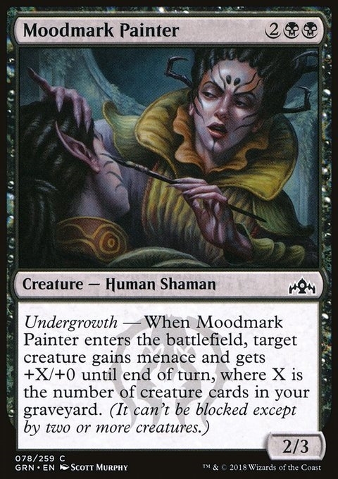 Undergrowth — When this creature enters, target creature gains menace and gets +X/+0 until end of turn, where X is the number of creature cards in your graveyard. (It can't be blocked except by two or more creatures.)