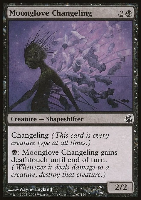 Changeling (This card is every creature type.) {B}: Moonglove Changeling gains deathtouch until end of turn. (Any amount of damage it deals to a creature is enough to destroy that creature.)