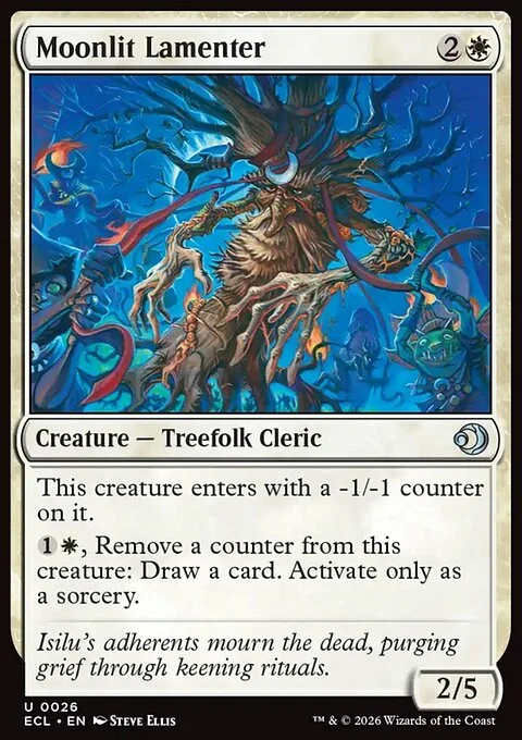 This creature enters with a -1/-1 counter on it. {1}{W}, Remove a counter from this creature: Draw a card. Activate only as a sorcery.