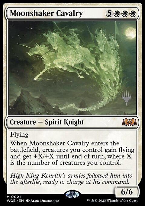 Flying When this creature enters, creatures you control gain flying and get +X/+X until end of turn, where X is the number of creatures you control.