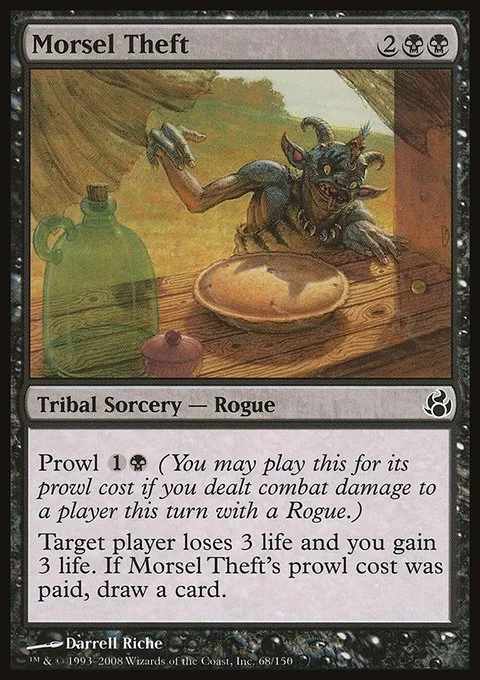 Prowl {1}{B} (You may cast this for its prowl cost if you dealt combat damage to a player this turn with a Rogue.) Target player loses 3 life and you gain 3 life. If this spell's prowl cost was paid, draw a card.