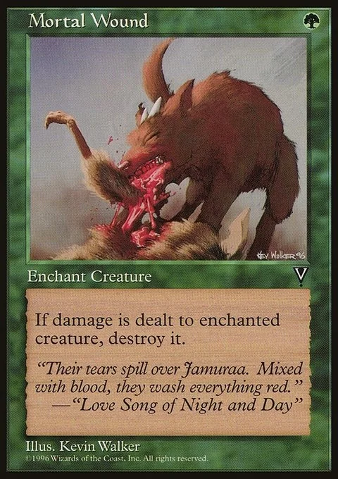 Enchant creature When enchanted creature is dealt damage, destroy it.