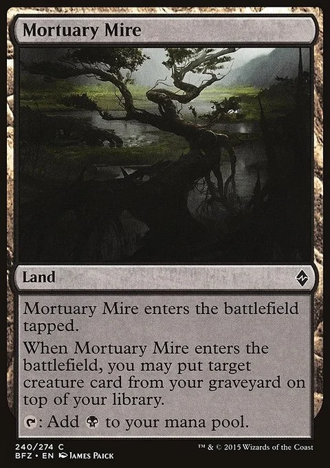 This land enters tapped. When this land enters, you may put target creature card from your graveyard on top of your library. {T}: Add {B}.