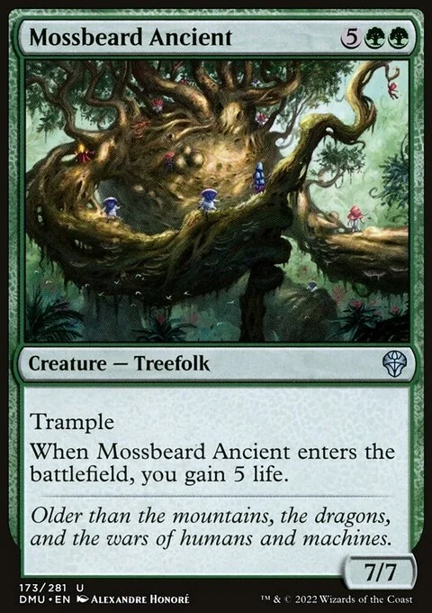 Trample When Mossbeard Ancient enters the battlefield, you gain 5 life.