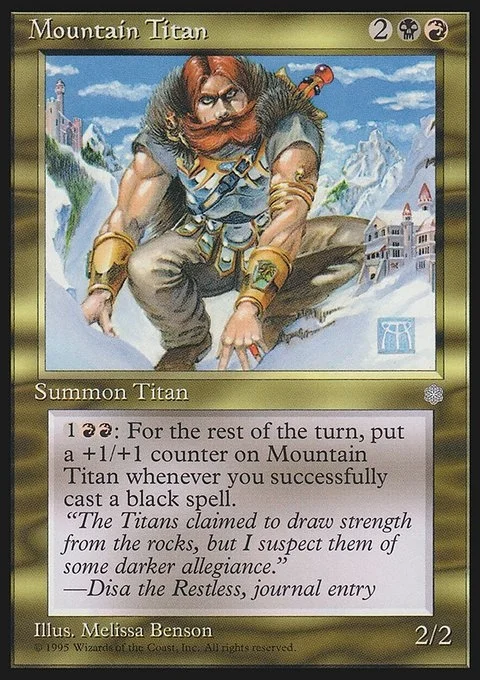 1RR: For the rest of the turn, put a +1/+1 counter on Mountain Titan whenever you successfully cast a black spell.