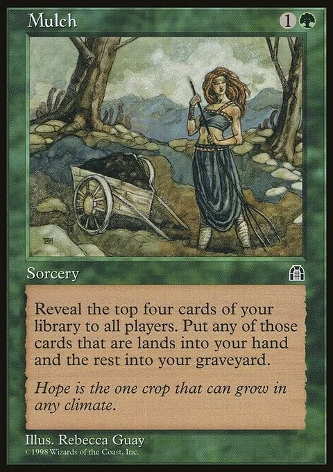 Reveal the top four cards of your library. Put all land cards revealed this way into your hand and the rest into your graveyard.