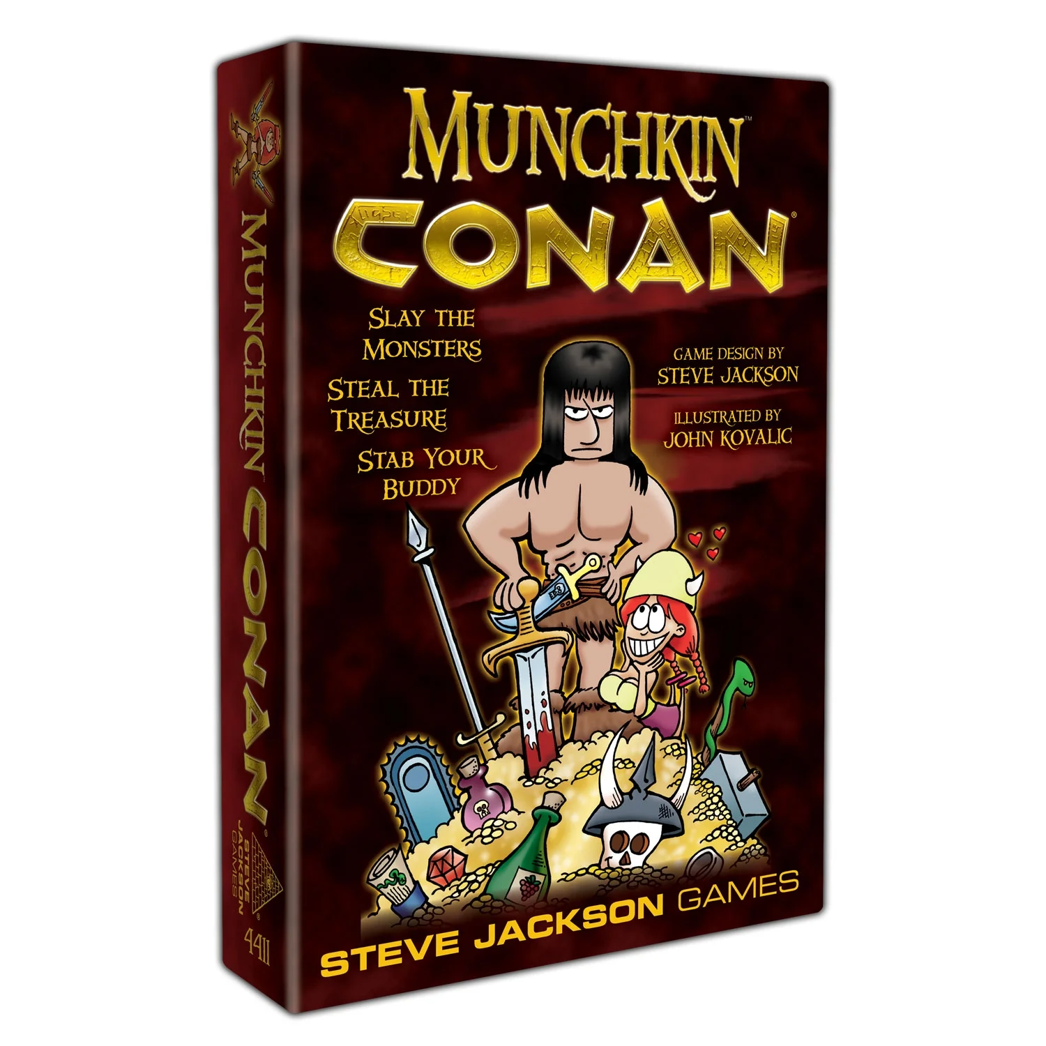 Robert E. Howard's epic hero gets the full Munchkin treatment in Munchkin Conan, the new core set written by Steve Jackson and illustrated by John Kovalic. Play a Cimmerian Warrior or a Stygian Wizard! Wield the Sword of the Phoenix and poison your foes with Black Lotus! Slay Thoth-Amon's minions, Pict raiders, and abominable monsters, and hear the lamentations of their women!