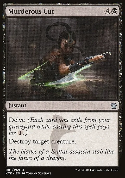 Delve (Each card you exile from your graveyard while casting this spell pays for {1}.) Destroy target creature.