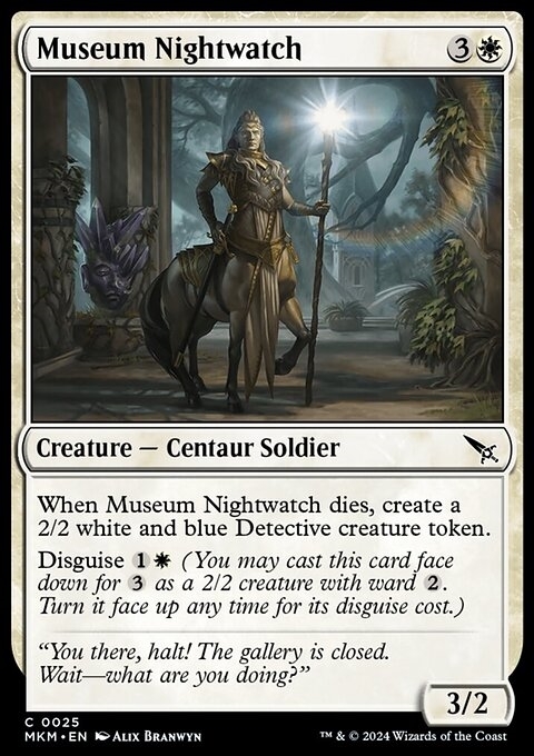 When this creature dies, create a 2/2 white and blue Detective creature token. Disguise {1}{W} (You may cast this card face down for {3} as a 2/2 creature with ward {2}. Turn it face up any time for its disguise cost.)