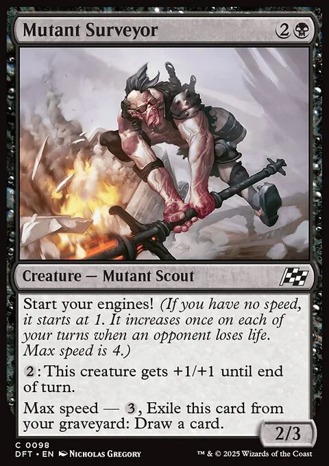 Start your engines! (If you have no speed, it starts at 1. It increases once on each of your turns when an opponent loses life. Max speed is 4.)