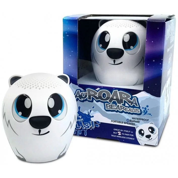 AuROARa BEARealis the My Audio Pet Splash Polar Bear is a waterproof version of the cutest, most KICK BUTT Bluetooth speakers on the Planet! Perfect for Bath time, Pool, Beach, singing in the rain or anywhere else where you might get wet.