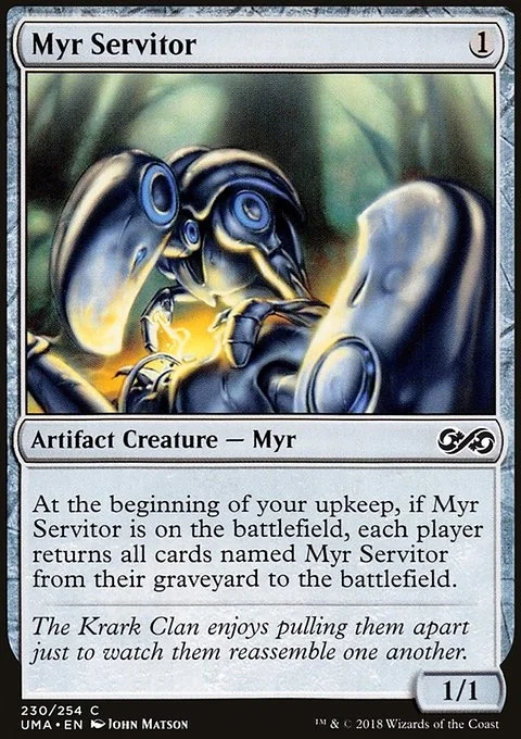 At the beginning of your upkeep, if Myr Servitor is on the battlefield, each player returns all cards named Myr Servitor from their graveyard to the battlefield.