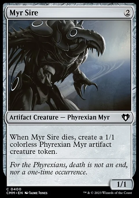 When this creature dies, create a 1/1 colorless Phyrexian Myr artifact creature token.