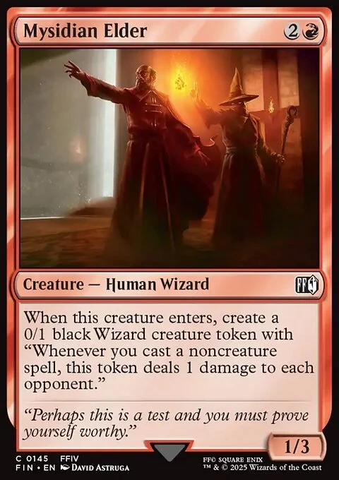 When this creature enters, create a 0/1 black Wizard creature token with "Whenever you cast a noncreature spell, this token deals 1 damage to each opponent."